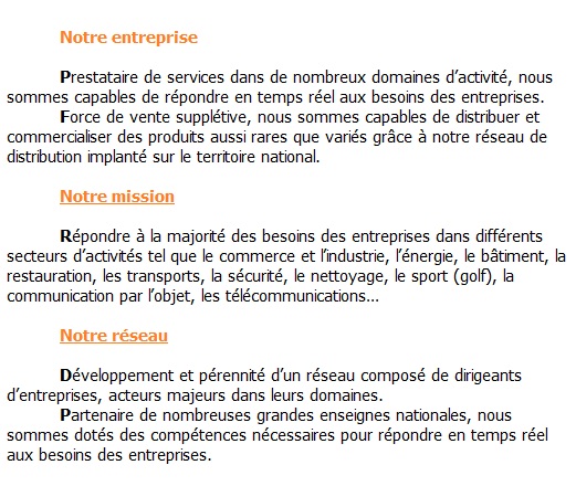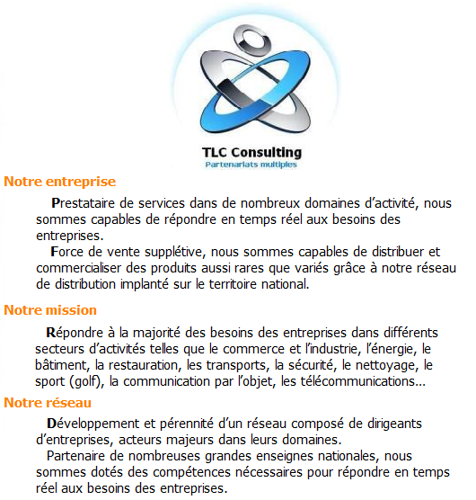 Répondre aux besoins des entreprises dans différents secteurs d'activités telles que le commerce et l'industrie, l'énergie, le bâtiment, la restauration, les transports, la sécurité, le nettoyage, le sport (golf), la communication par l'objet, les télécommunications .Lire encore .... |